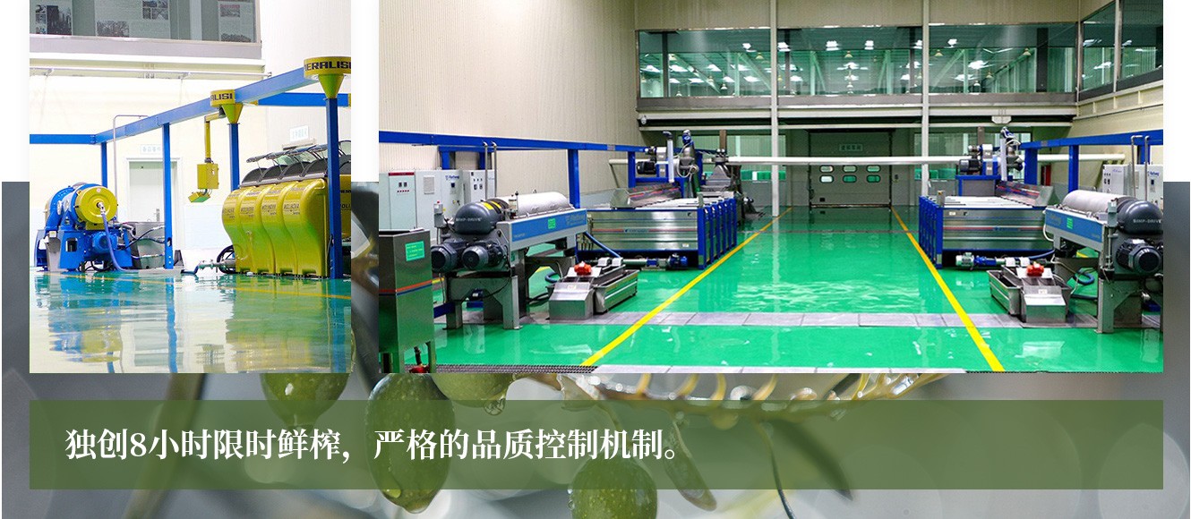 為了生產(chǎn)出頂級(jí)品質(zhì)的橄欖油,公司專(zhuān)門(mén)訂制了5萬(wàn)個(gè)食品級(jí)專(zhuān)用果筐,從采摘到壓榨控制在8小時(shí)以內(nèi),先后引進(jìn)了一條意大利貝亞雷斯和兩條德國(guó)福樂(lè)偉橄欖油冷榨生產(chǎn)線,建成了亞洲最大的特級(jí)初榨橄欖油生產(chǎn)車(chē)間。